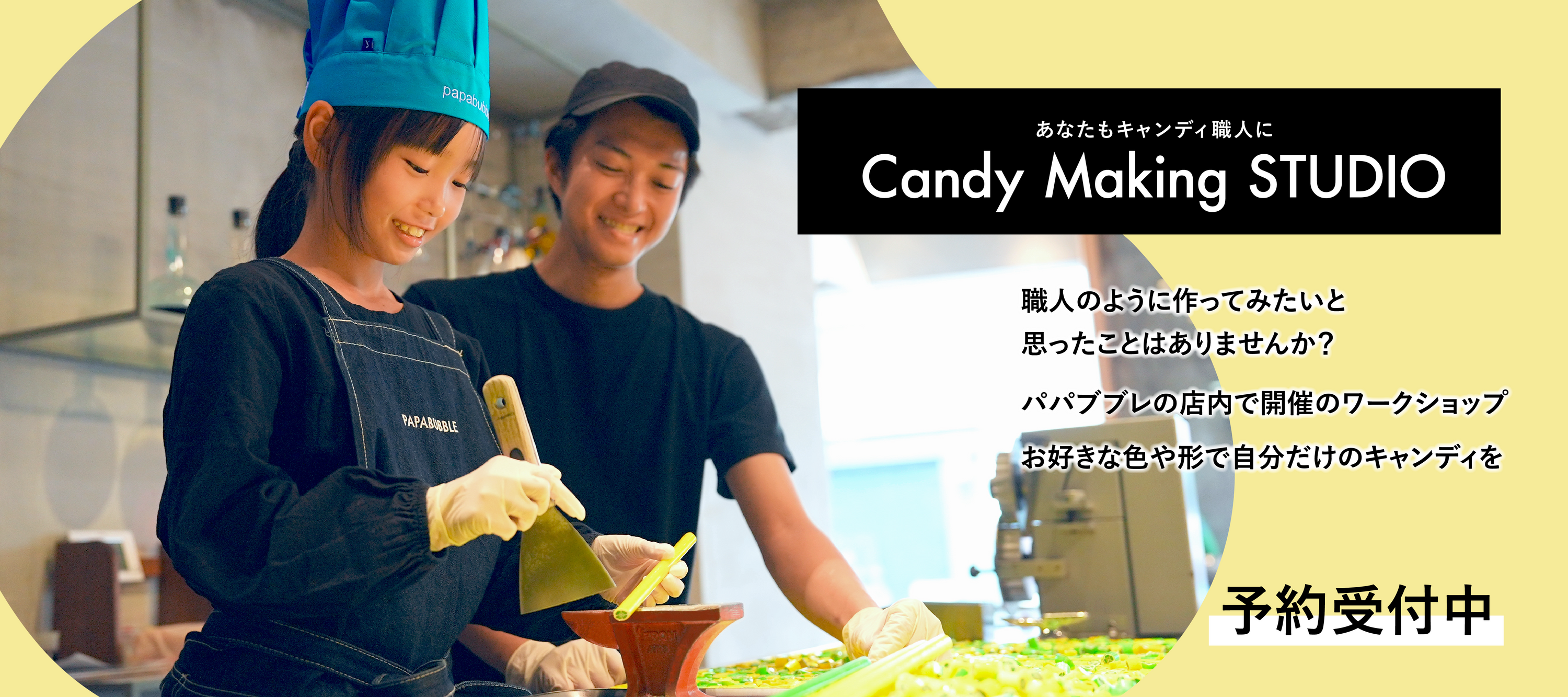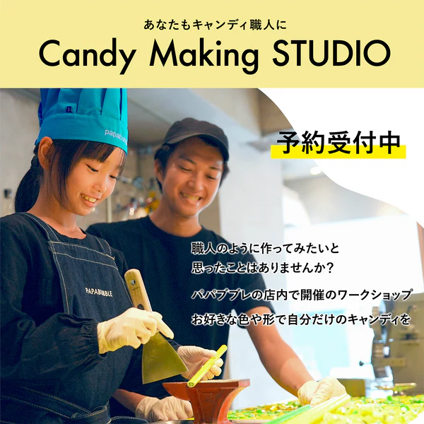 見て楽しい。選んで楽しい。食べて楽しい。パパブブレに来た人は、誰でも子供みたいな目をしてる。お菓子ってそもそも、ワクワクするためにあるんだから。ここだけにしかない体験、どうぞお楽しみください。