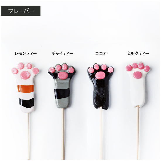 ぷにっと可愛いねこの肉球をモチーフにしたロリポップが新たに登場します。思わず手に取りたくなる愛らしい見た目に加え、口にした瞬間にねこのようにのんびりとした気分を味わえるよう、フレーバーはティーを中心に構成しました。肉球ならではの丸みや立体感、ぷにっとした質感がしっかりと伝わるよう、形のバランスや厚みにまで細やかにこだわっています。ねこの毛色にミルキーな色合いの子が多いことから着想を得て、味わいはミルキーなカフェドリンク系をセレクト。やさしくまろやかな風味が広がり、忙しい毎日の合間に、ふっと肩の力が抜けるようなひとときを演出します。「ねこの手も借りたい!」というほど忙しい方への、ささやかなギフトにもおすすめです。
