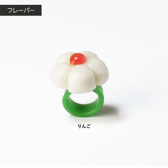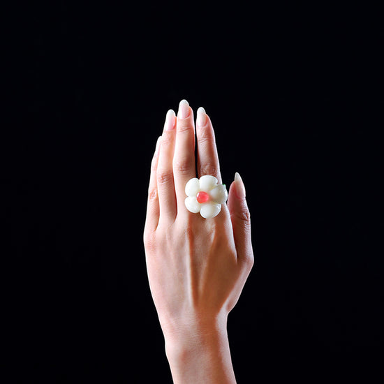 コロンとした丸い花の形で、見るだけで気持ちがやわらぐことを目指したリング