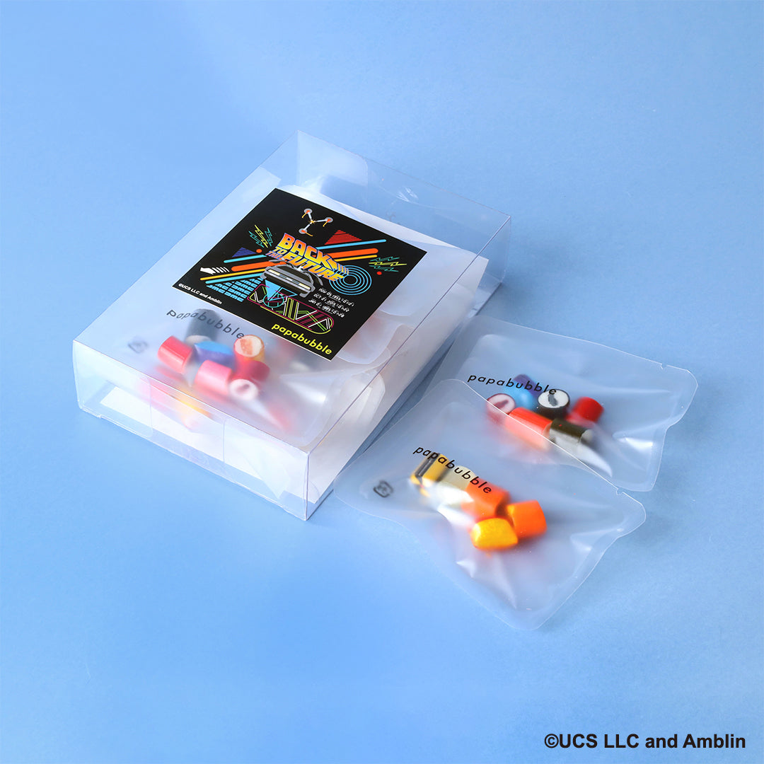 主人公マーティが大好きなコーラをベースにした「キャンディA」、爽快なソーダフレーバーを集めた「キャンディB」。あの味を思わせる味わいや、未来のカフェで手に取った気分を楽しめるアレンジも加わり、口に入れた瞬間に映画の世界へタイムスリップ!デザインは、ホバーボードやアインシュタイン、マーティやドクを連想させるモチーフをトップ職人が丁寧に再現。手に取るだけで映画の名場面が蘇ります。商品は、仲間と分け合える個包装タイプ、ギフトにも最適な瓶入りキャニスタータイプもご用意。映画公開から40年を迎えようとする今なお、色褪せないワクワクとドキドキを——。10月21日、あなたの口の中で“タイムサーキット”が作動します。