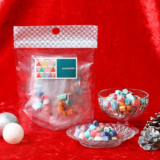 ◆ 白銀の世界を閉じ込めた、ホワイトクリスマスキャンディ & 光ってユニーク!ポップなサンタのキャンディミックス