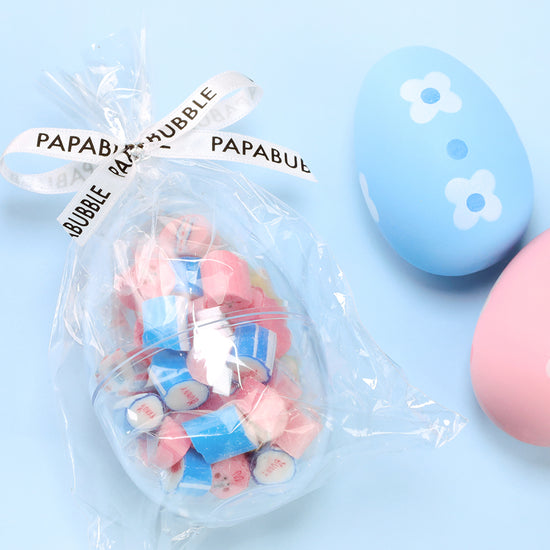 イースターを象徴する“たまご”の形をした容器を使用し、可愛らしくラッピングしたパッケージは、そのままプレゼントとして渡せるデザインに。〈バニーミックス〉と〈エッグミックス〉、それぞれのキャンディを詰めました。