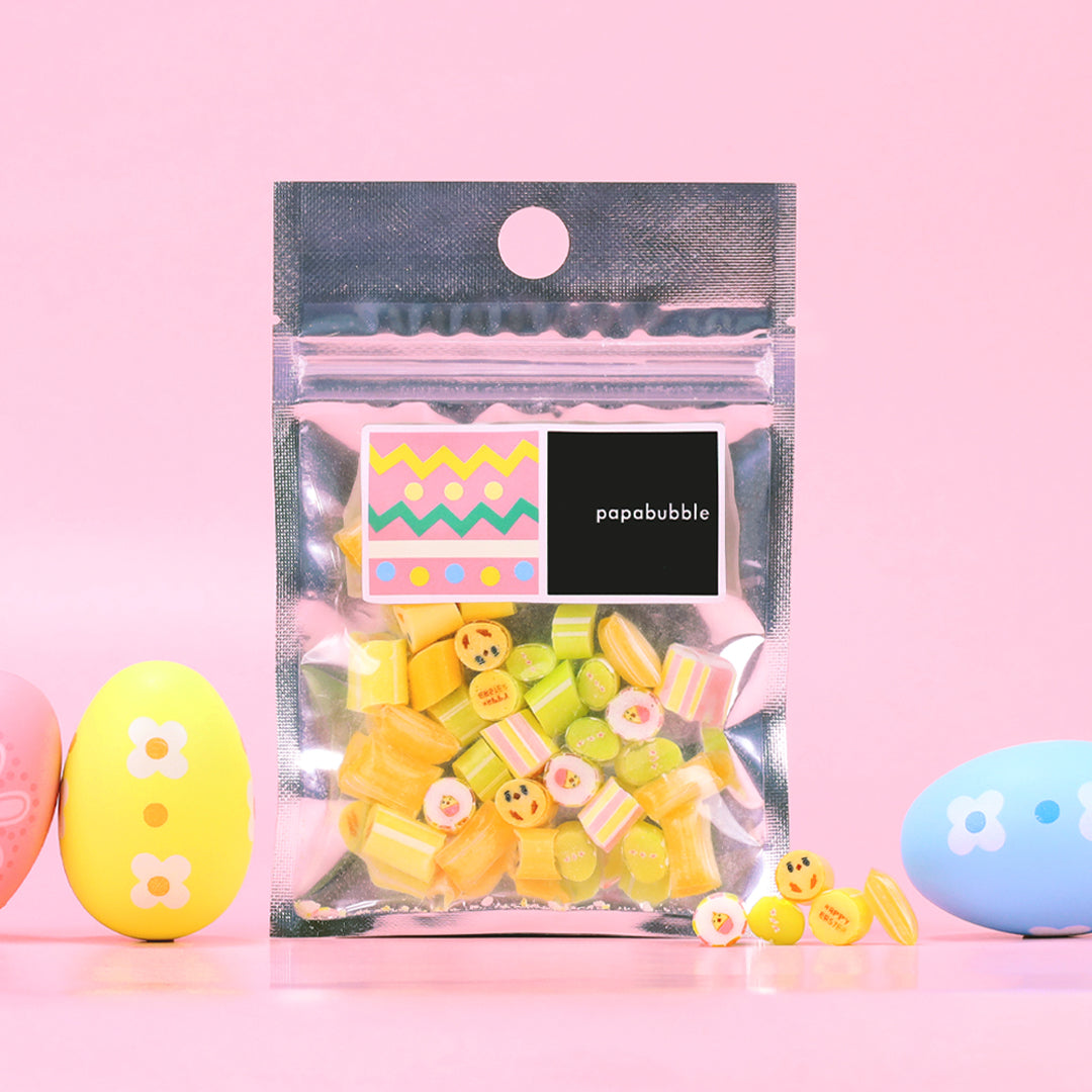 “たまご”を主役にした「イースターミックス」は、ひと目で“エッグ”と分かるよう、色味やモチーフにこだわって仕上げました。イースターらしい明るく楽しい雰囲気を大切にしながら、パパブブレらしい遊び心のあるデザインに仕上げています。