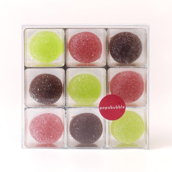旬のブドウを贅沢に味わえる、ブドウ尽くしのバブレッツが今年も登場。毎年人気の「巨峰」と「マスカット」に加え、今年は9個入り限定で新作「山ぶどう」が仲間入りしました。濃縮果汁を使用したリッチな味わいのマスカット、まろやかな甘さが広がる巨峰、そしてカシス濃縮果汁を加えることで酸味と野性味を引き立てた山ぶどう。個性豊かな3種のブドウの美味しさを、ぜひ食べ比べてお楽しみください。