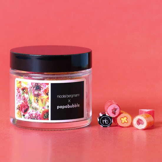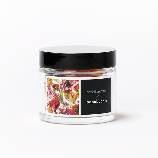 花の世界観を閉じ込めた、五つの香りとカラーが広がる限定キャンディが誕生しました。ニコライ バーグマンの象徴であるフラワーボックスの世界観を、パパブブレの職人技でキャンディに落とし込んだ特別なコレクションです。花々が持つ“香り・色・余韻”を、職人手作りのキャンディで表現し、視覚・味覚・嗅覚のすべてで楽しめる商品に仕上げています。ラインナップは、北欧のベーカリー文化を思わせる「カルダモンロール」、深い紫が印象的な「カシス」、華やかに香る「エルダーフラワー」、清涼感のある「ミント」、そしてニコライの世界観を象徴する「ローズ」の5種。それぞれのフレーバーが持つ個性を、花の色彩をイメージしたキャンディデザインで表現しています。