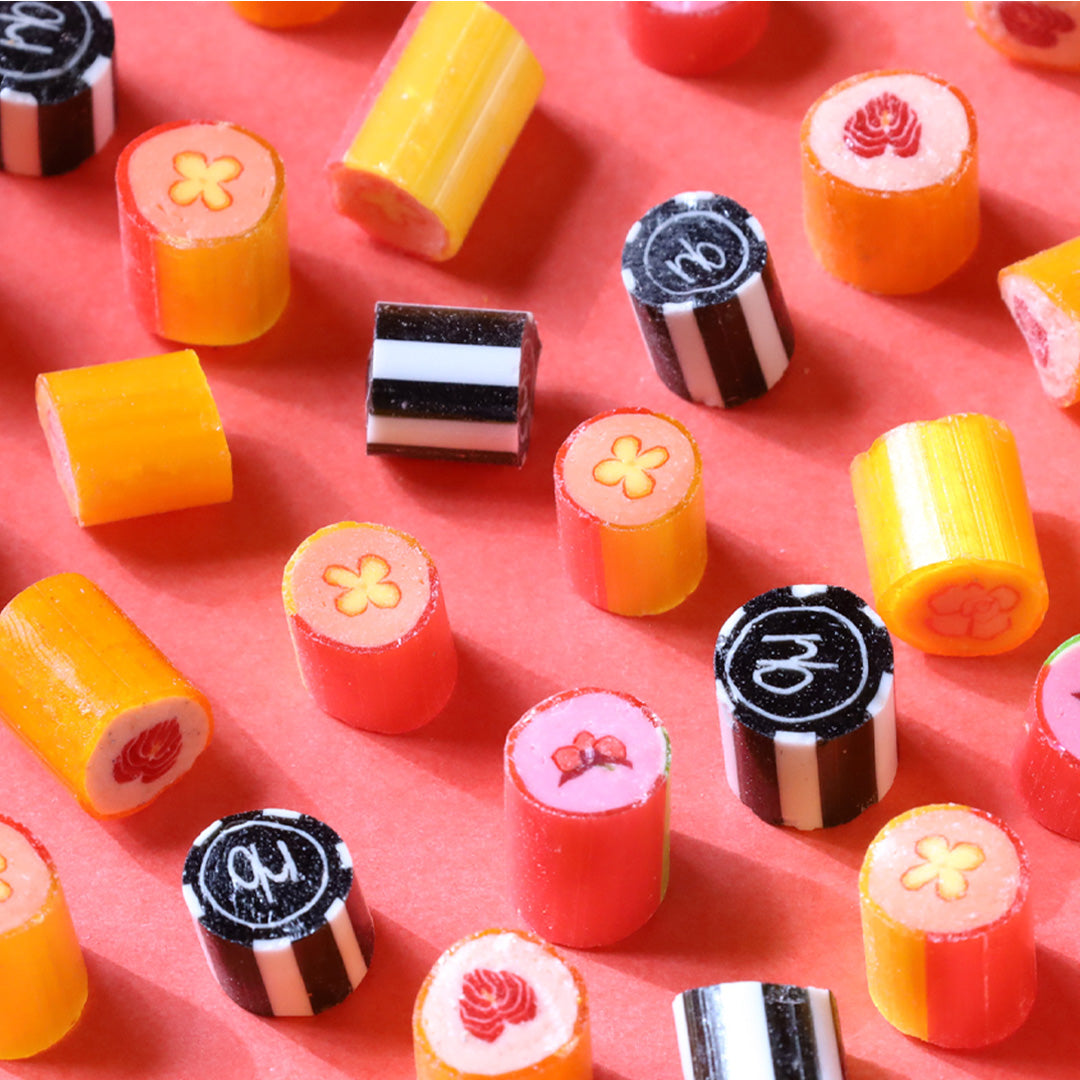 砂糖(国内製造)、水飴、カルダモン/酸味料、香料、着色料(酸化チタン、赤102、赤106、黄4、黄5、青1、青2)