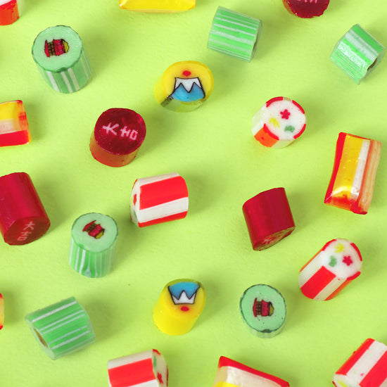 お正月らしい華やかな絵柄と色合いで仕上げた、新年にぴったりのキャンディミックスです。和の雰囲気を感じるフレーバーと、幅広い世代に人気のフルーツフレーバーを組み合わせ、お年賀やちょっとしたご挨拶にも選びやすい味わいにまとめました。 富士山からのぞく初日の出は、光に透かすときらりと輝くこだわりのデザイン。さらに「大吉」の絵柄に加えて、見つけたら一年がよりハッピーになるかもしれない“レア柄”の【大大吉】もひそかに紛れ込んでいます。 そのほか、厄払い・無病息災を願う「獅子舞」や、“おめでたい”ものの象徴である「松竹梅」など、縁起物のモチーフも取り入れ、手にした瞬間から新年の明るい気分を感じていただけるキャンディに仕上げています。 また、「午年ミックス」と「正月ミックス」の両方をお楽しみいただける個包装タイプもご用意しました。
