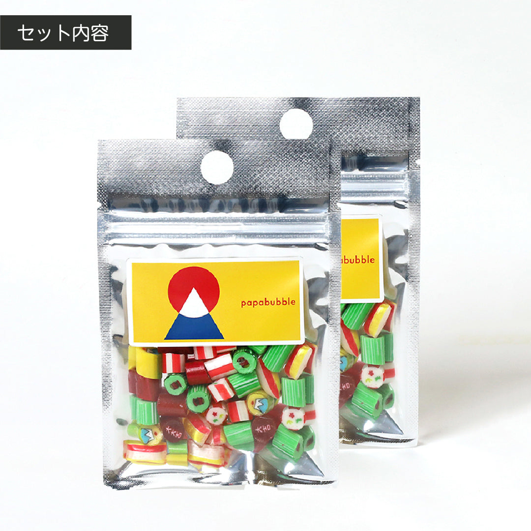 【原材料】 砂糖(国内製造)、水飴/酸味料、香料、着色料(酸化チタン、赤102、赤106、黄4、黄5、青1、青2) 【内容量】 40g×2袋 【賞味期限】 製造日より4ヵ月 【保存方法】 直射日光・高温多湿を避け、常温で保存 【注意事項】 開封後はなるべくお早めにお召し上がりください 【フレーバー】 富士山:マンゴー、獅子舞:マスカット、大吉:あまおう、松竹梅:うめ、マキナ:ぶどう
