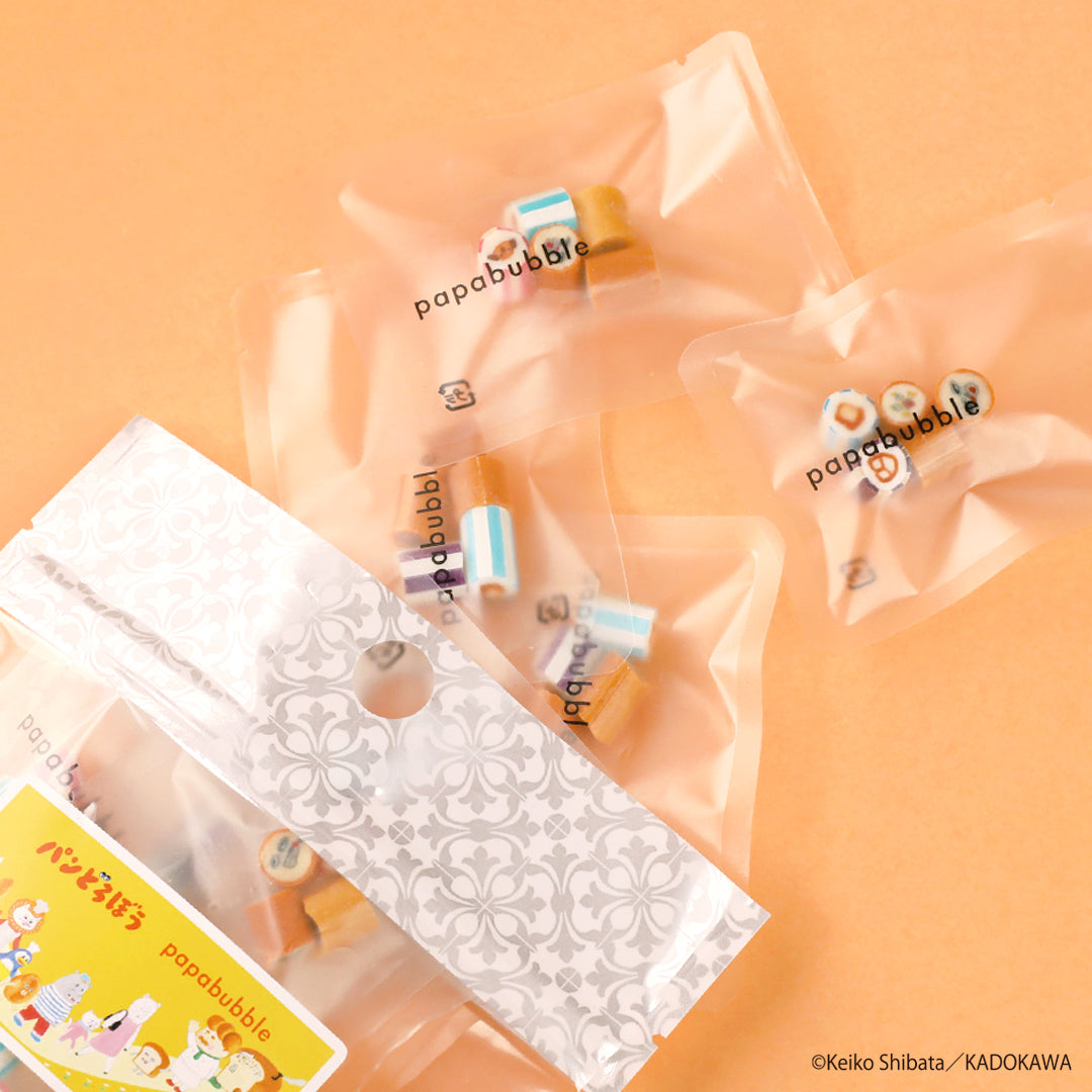 キャンディAとキャンディB、両方の絵柄とフレーバーを一度に楽しめる、まさに『いとしい いとしい いとしの パンどろぼうずかん』のような贅沢なセットです。個包装仕様なので、お出かけのお供や、お友達への“おすそわけ”にもぴったりのサイズ感。