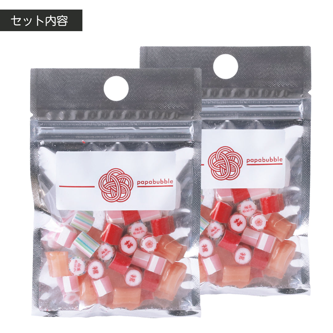 キャンディの絵柄には「祝」「おめでとう」の文字を取り入れ、ひと目で気持ちが伝わるデザインに仕上げました。