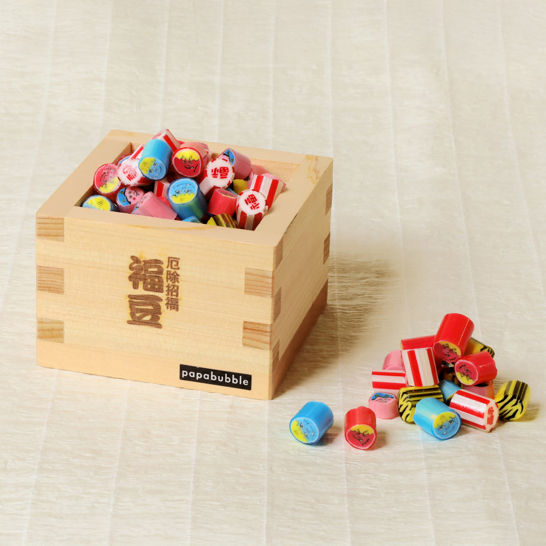 2月3日の節分に向けて、健康や幸せを願う「甘い鬼シリーズ」が登場。“甘い”にはキャンディの甘さだけでなく、人を想う優しさの意味も込め、節分をもっと身近で楽しい行事として楽しめるようデザインしました。福豆の代わりに福キャンディを詰めた桝や、縁起の良いでんでん太鼓モチーフのロリポップとともに、心弾むハッピーな節分を提案します。