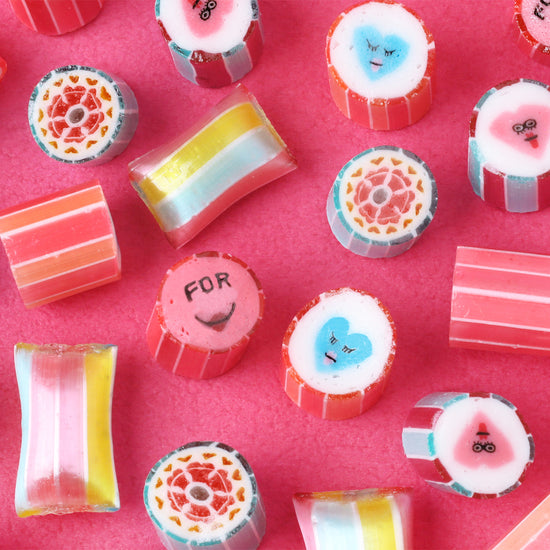 「FOR U」の文字キャンディは、Uを“ぷるんとしたくちびる”に見立てたユニークなデザイン。