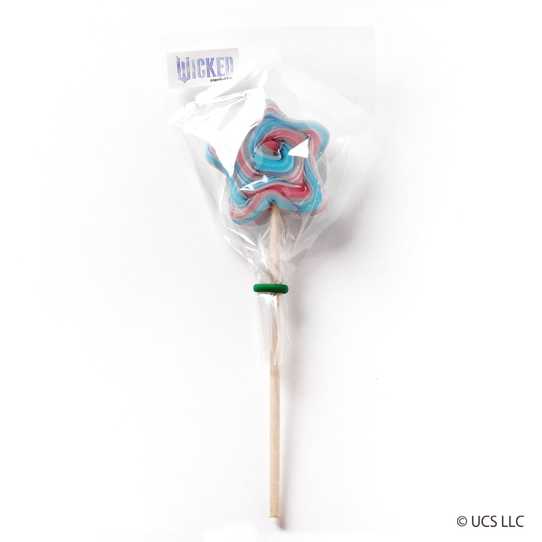 グリンダの杖先から放たれるきらめく光をイメージしたロリポップキャンディ。WICKEDの中でも象徴的な存在であるグリンダの魅力を、色と味わいで表現しました。映画『ウィキッド 永遠の約束』に登場するグリンダの印象をもとにした配色で、上品さと可憐さを兼ね備えた仕上がりに。フレーバーは、グリンダの洗練されたイメージに合わせたピーチシャンパンフレーバーを採用しています。甘すぎず、大人も楽しめる味設計で、映画鑑賞前後の余韻としてもおすすめの一品です。